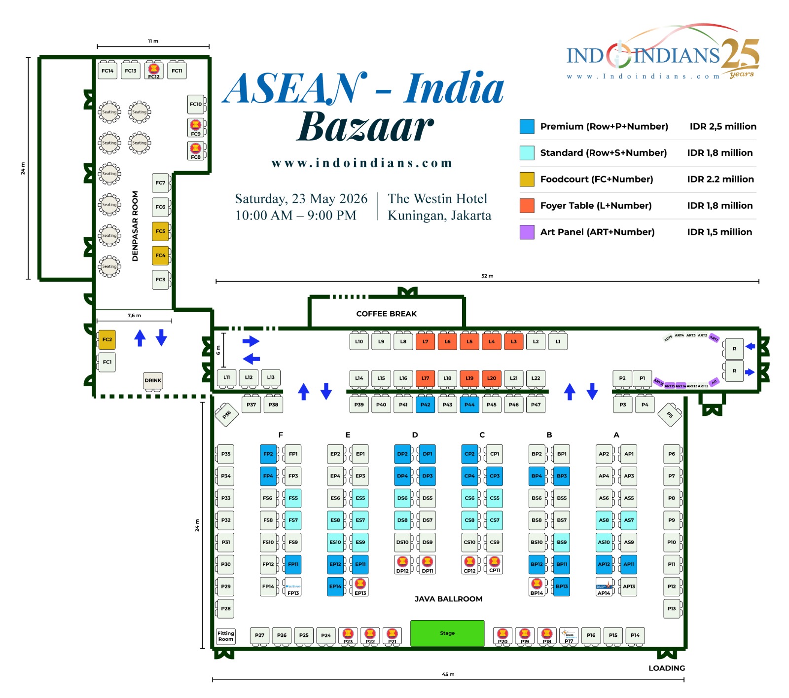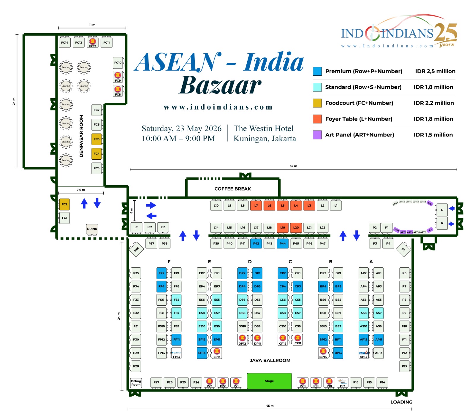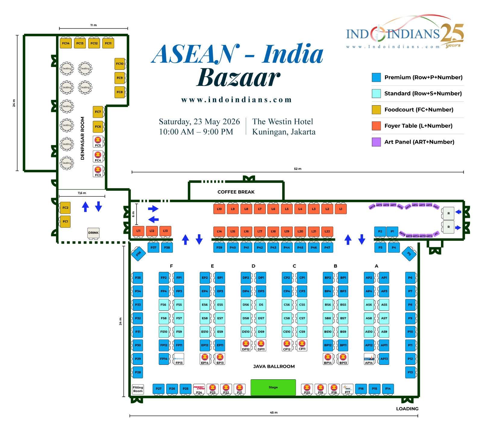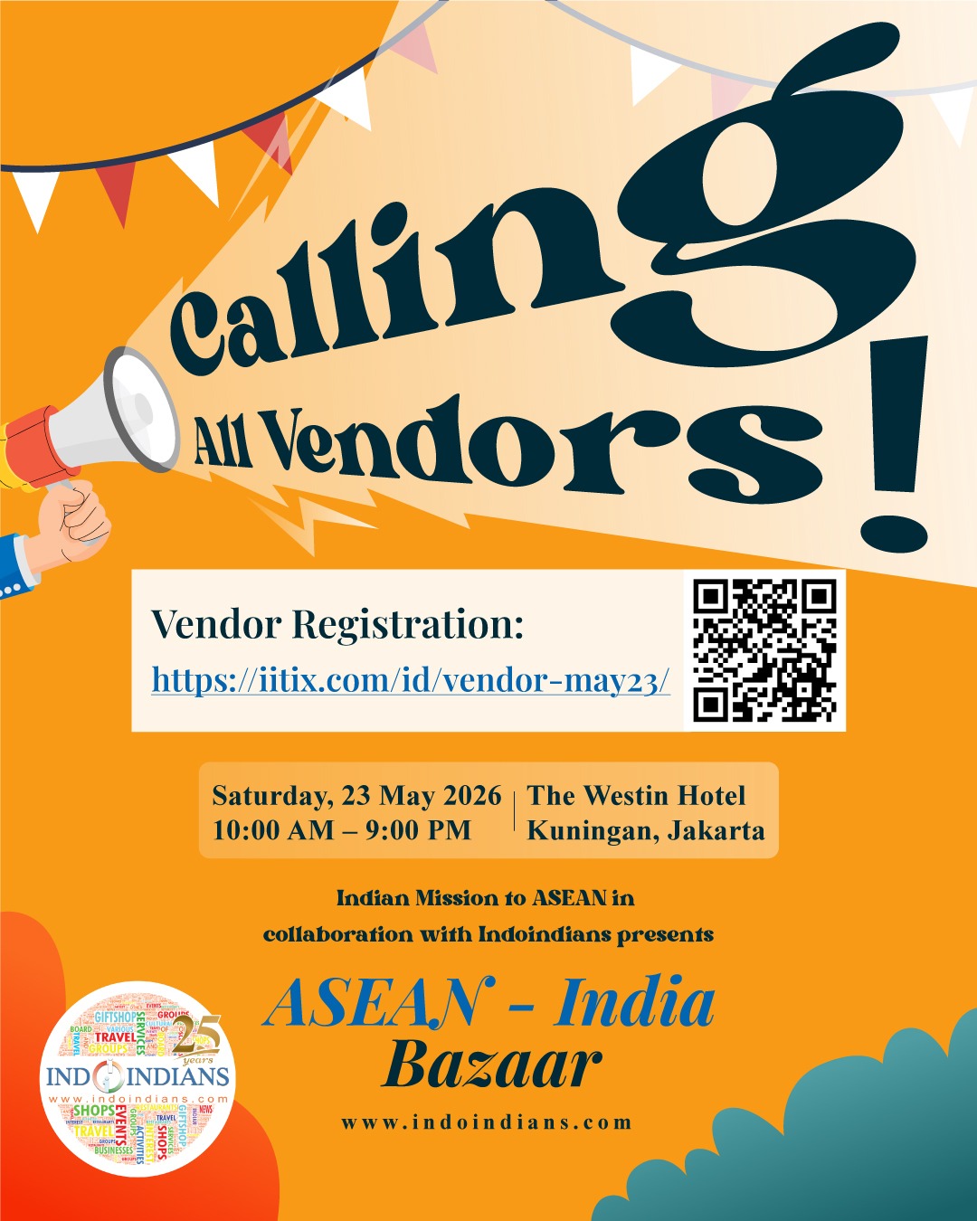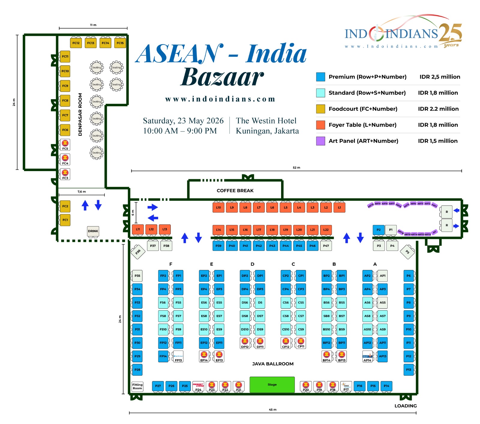 - Timings: ASEAN-India Bazaar – Saturday 23rd May 2026 at The Westin Hotel Jakarta, 10 AM to 9 PM. Kindly note that all participants need to be present for the entire duration of the event.
