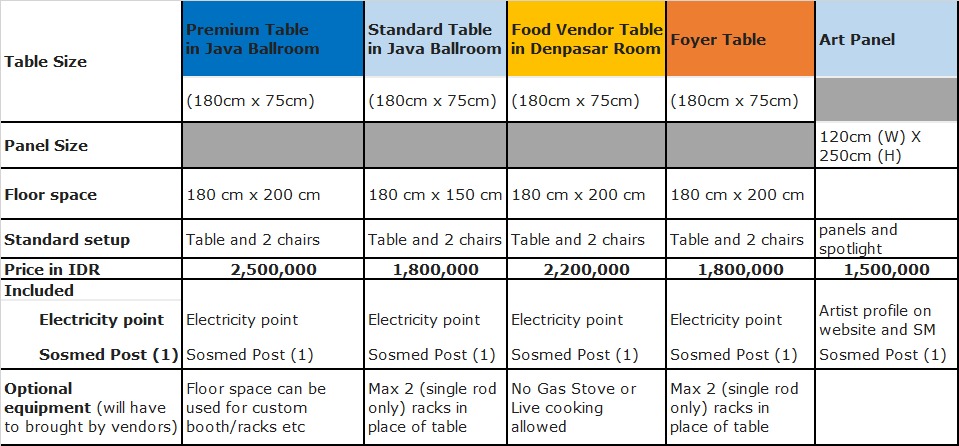 - Additional Vendor online marketing/promotion package – IDR 1.000,000/ for 1 custom posts on each Indoindians social media channels