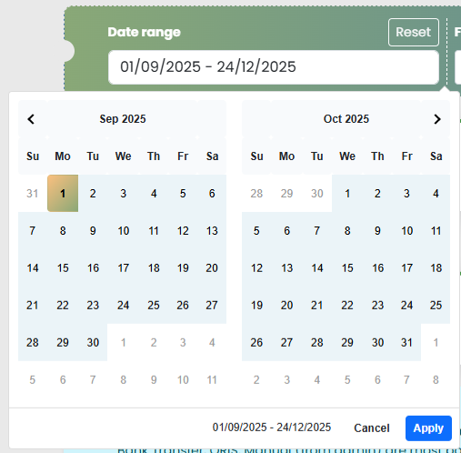 Catatan: Saat tombol Reset diklik, date range akan kembali ke hari ini (current day).
