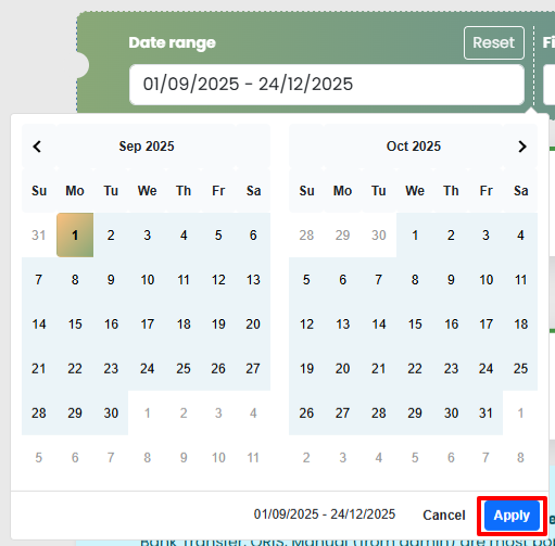 Setelah pilih rentang tanggal, tekan “Apply” pada pop-up date range.