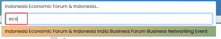 Anda bisa mencari event dengan mengetik judul event pada kolom pencarian, hasilnya muncul di dropdown.