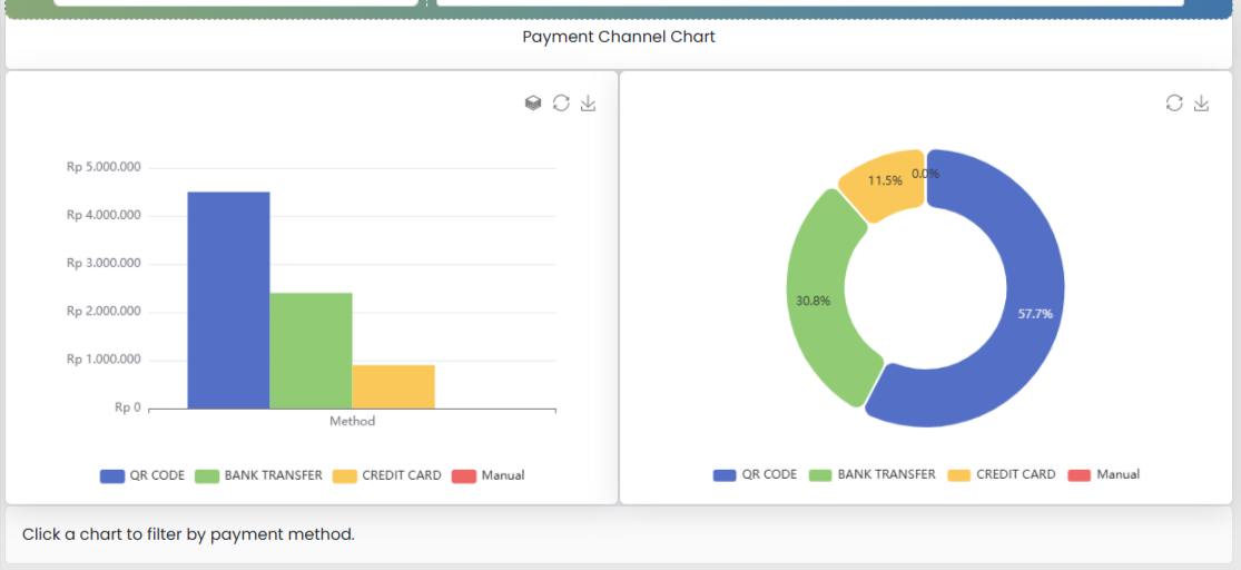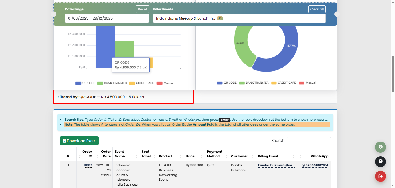 Chart juga bisa diklik dan akan mem-filter attendee sesuai dengan metode pembayaran yg dipilih.