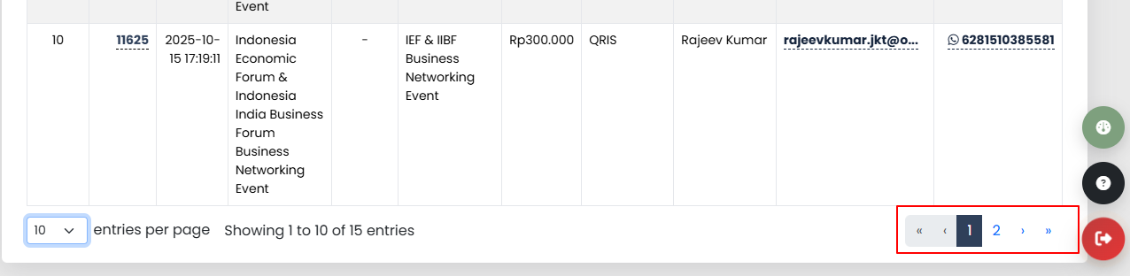 Catatan: Data akan dibagi ke beberapa halaman, tergantung jumlah row yang Anda pilih.