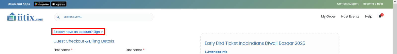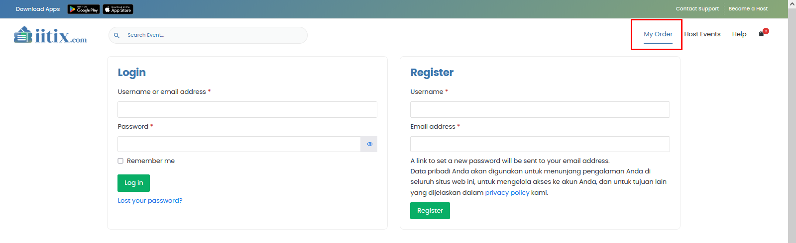 If you have ordered before or already have an IITIX account, you can log in first and place your order using your account by following the instructions in section D (Log in with a Registered Account). Or, if you forgot your account password, you can reset it by following the instructions in section E (Reset / Forgot Password).