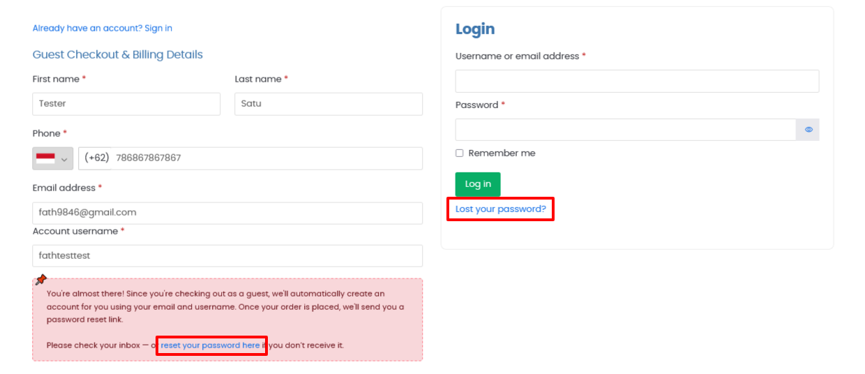 Gambar 18 Gambar Figure 18. Password reset request link on the checkout page (left) and on the login page (right)