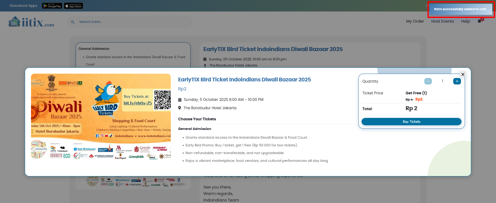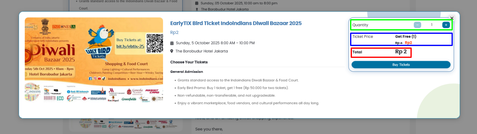 - “Buy Tickets” button to add the ticket(s) to your cart