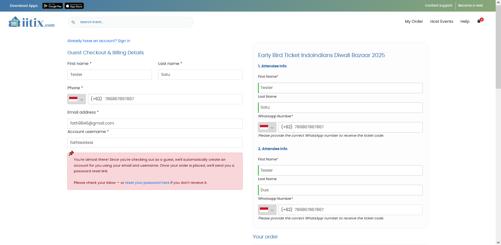 (Make sure the phone number is linked to an active WhatsApp number so the system can send ticket purchase notifications for each attendee.)